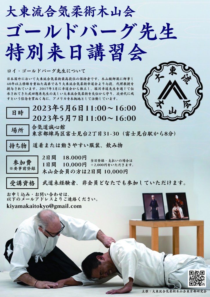 大東流合氣柔術木山会ゴールドバーグ師範来日講習会が2024年5月4~5日に開催します。